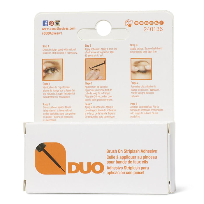 The Ardell Duo Brush-On Lash Adhesive goes on dark and blends with black or brown lashes. It comes with an ultra-thin brush for precise, quick application of both strip and individual lashes for all day wear. This latex-free formula is safe for contact lens wearers and sensitive eyes.