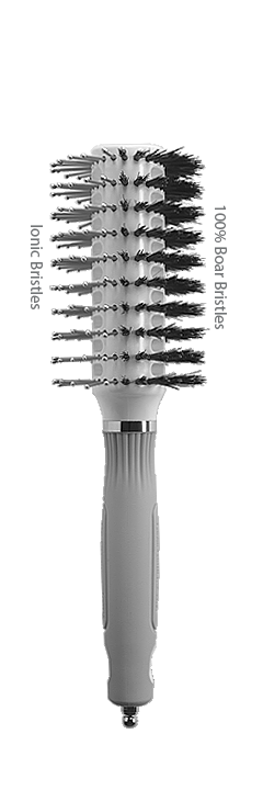 Lightweight & comfortable Oval Round Brush with 100% boar bristles for styling and Ionic bristles for detangling and brushing. One curved side ...