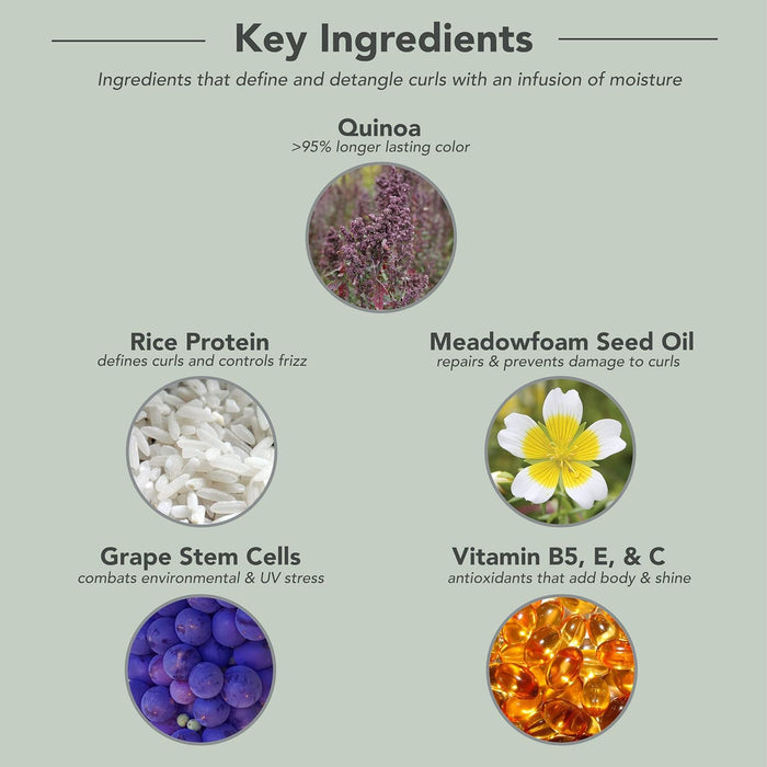 Curl Define Conditioner is Sulfate free, Paraben free, Gluten free, DEA free, Sodium chloride free, Powerful anti-aging properties, Thermal & UV protectants, Weightless, Will not build up.