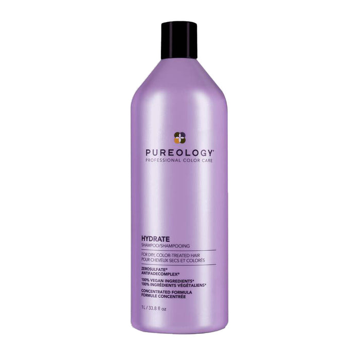 Pureology Hydrate Shampoo deeply hydrates normal to thick dry, color-treated hair with key ingredients Jojoba, Green Tea, and Sage and a signature aromatherapy blend of Lavendar, Bergamot, and Patchouli.