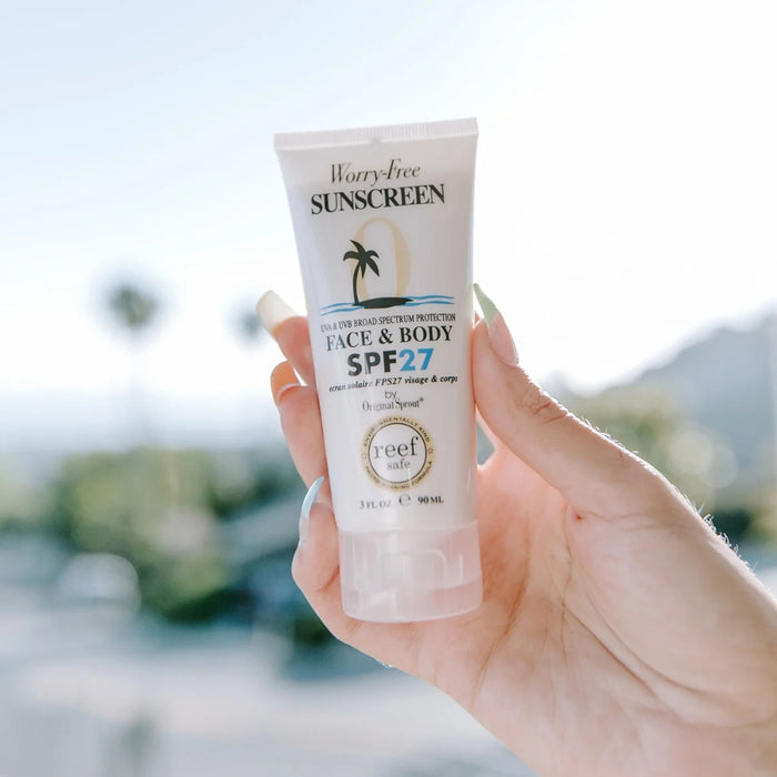 Original Sprout's Reef Safe Face and Body Sunscreen with SPF 27 is made with 10% non-nanoparticles of natural zinc, which gives broad spectrum protection against both UVA and UVB rays. The gentle formula won’t clog pores and is safe for babies, children and adults.