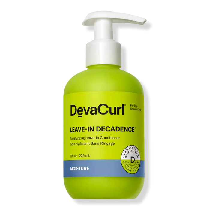 DevaCurl's LEAVE-IN DECADENCE Moisturizing Leave-In Conditioner is quick-absorbing, with a moisture preserving blend that quenches dry, coarse curls leaving them nourished and soft with frizz control and shine.