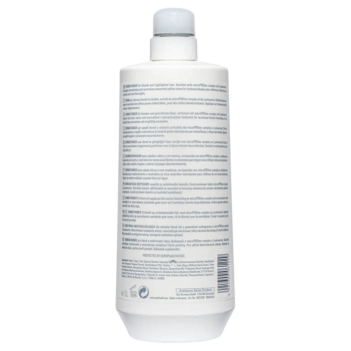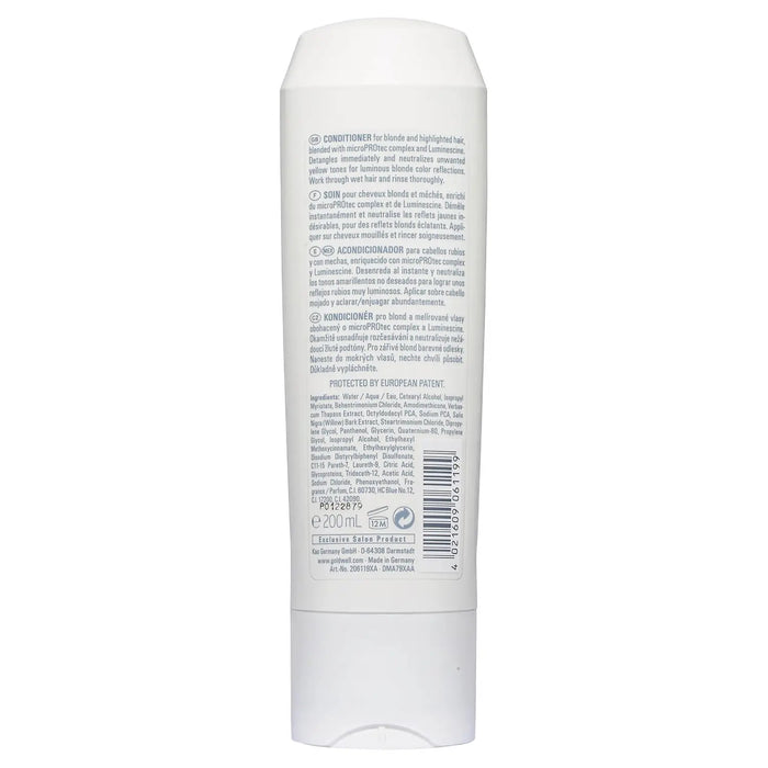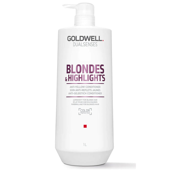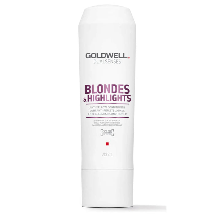 Goldwell DualSenses Blondes & Highlights Anti-Yellow Conditioner for blonde and highlighted hair detangles immediately and neutralizes unwanted yellow tones for luminous blonde color reflections