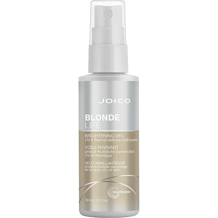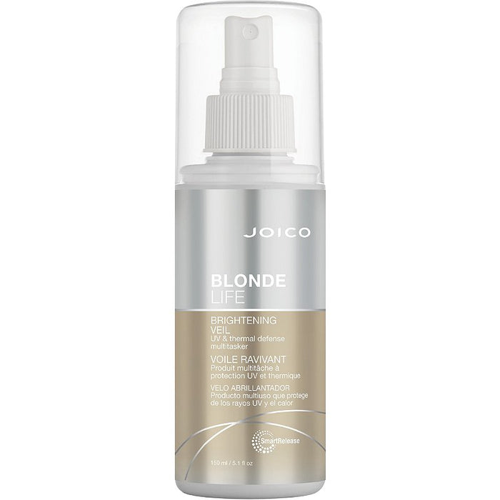 The Joico Blonde Life Brightening Veil shields color from UV damage and fading; protects against thermal styling; adds shine; detangles and controls frizz.