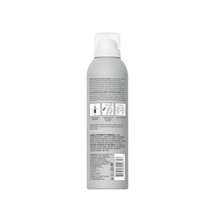 BEFORE EACH SPRAY, SHAKE CAN WELL. Hold canister 10' away from dry hair. Section hair, lift & spray roots to ends. Repeat until desired style is achieved making sure to shake can between each spray. Tousle hair with your fingers. Spray on finished styles for extra texture and hold.