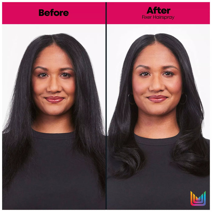 Matrix Fixer Hairspray provides continuous lift, fullness and volume to any style while making strands shinier. Has flexible hold and all-day humidity resistant to keep frizz under control.