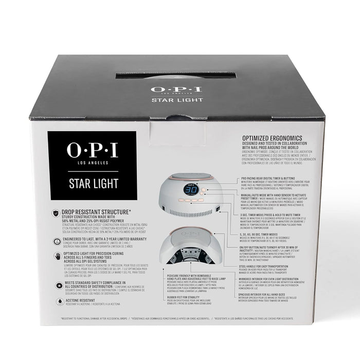 Drop-resistant* -- resistant to functional damage after accidental drops. Manual/Auto Mode with hand sensor to activate the preset timer. Pedicure-friendly. Sturdy construction made with 58% metal and 25% OPI Resist Polymer. Acetone resistant + grey exterior won’t show nail dust or dirt.