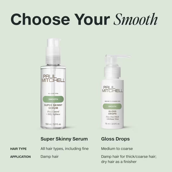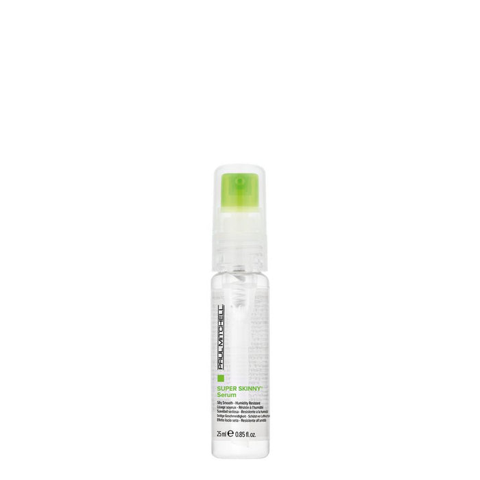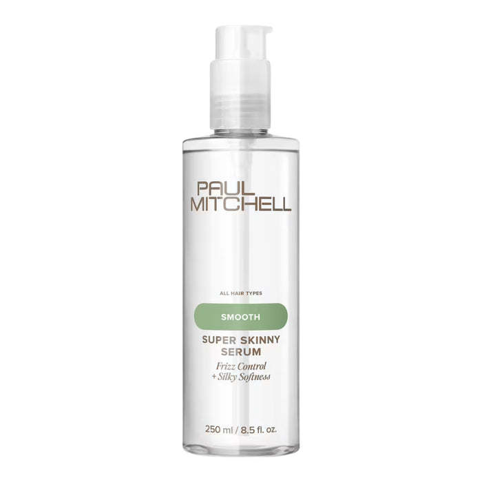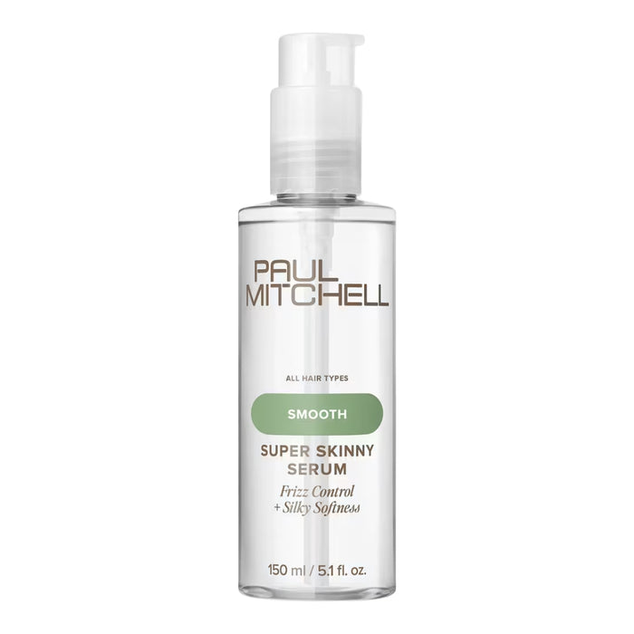 Blow-dry hair in less time with Super Skinny Serum from Paul Mitchell. This best-selling blowout primer helps speed up drying so you get silky-smooth results faster. The humidity-resistant formula contains lightweight silicones that condition and seal the cuticle, leaving hair frizz-free in any weather. Simply rub one pump into hands and apply to clean, damp hair before drying for smooth, shiny strands.