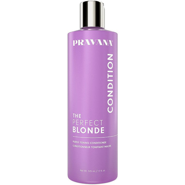 Neutralize unwanted yellow tones in blonde, silver or highlighted hair with PRAVANA'S THE PERFECT BLONDE Purple Toning Conditioner, proven to reduce breakage, add shine and moisturize dry strands.