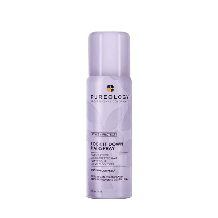 Pureology Lock It Down Hairspray provides fast-drying, maximum hold, and radiant shine to color-treated hair with key ingredient Olive Oil and a signature aromatherapy blend of Tuberose, Almond Milk, and Cedarwood.