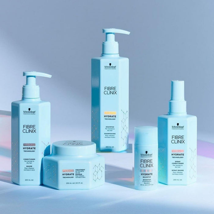 FIBRE CLINIX Hydrate Spray Conditioner provides an immediate lightweight moisturizing effect to protect hair from drying out while adding softness and mangeability.
