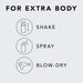 Shake well to activate its 2-phase formula. Spray on damp hair from roots to ends. Blow-dry for extra body, or air dry to enhance waves and curls.