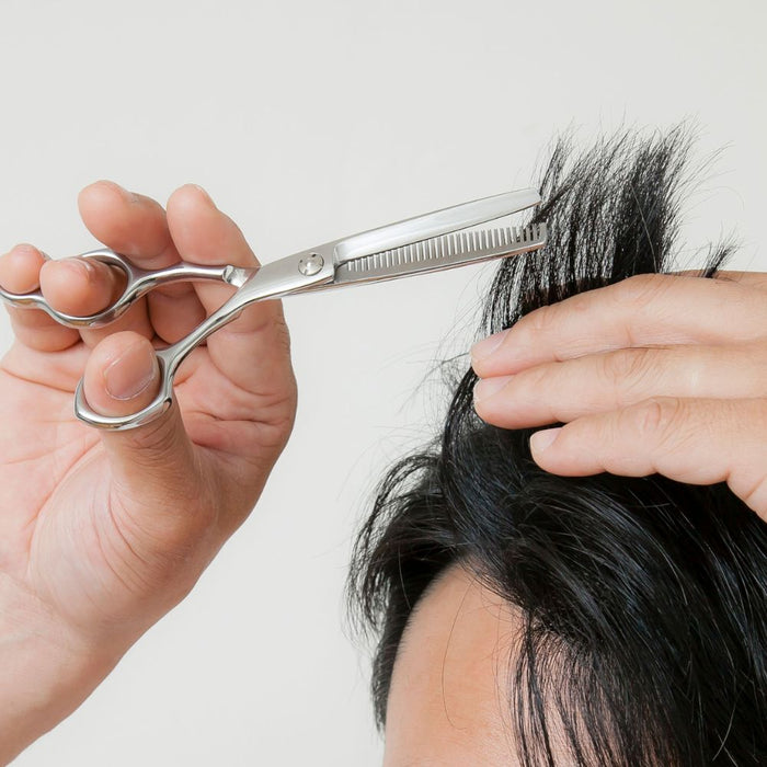 BLEND WHILE YOU CUT! Now you can create a beautiful finish to your cut by blending the cut lines for natural transitions from one section into another. Honed and ground for precision cutting, these 5.5″ shears are an economical choice for blending hair. The handles are slightly offset for comfort. The stainless steel is drop-forged and it’s edged, polished, finalized and inspected in Japan. SS-704.