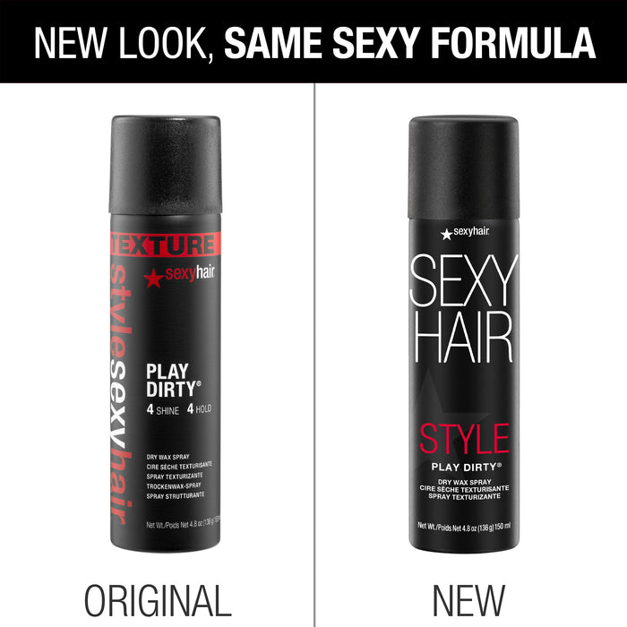 Style SexyHair Play Dirty Dry Wax Spray is a wax that builds texture, dimension and separation. Formulated for all hair types and styles, this multi-functional styler delivers volume and body that lasts up to 48 hours while providing humidity resistance up to 72 hours.