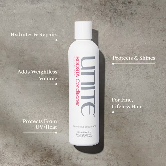 Following your favorite Shampoo, apply conditioner from roots to ends. Leave in hair for 1 to 3 minutes as needed. Rinse thoroughly. Follow with BOOSTA Spray and your favorite UNITE styling and finishing products.