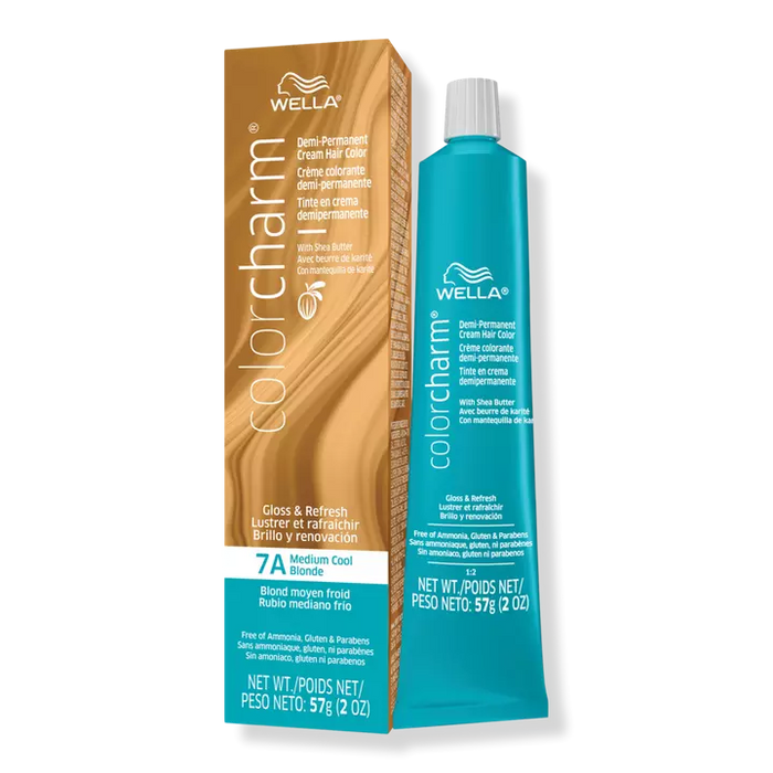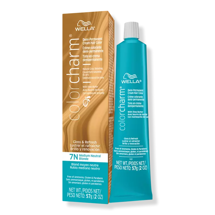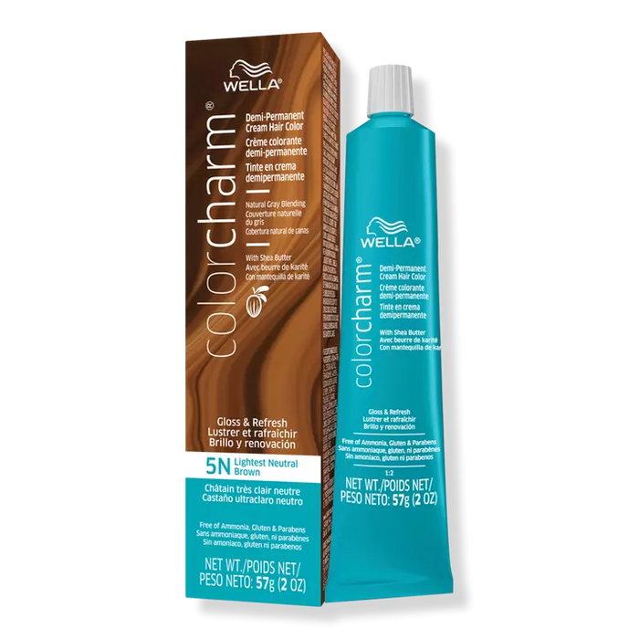 Featuring Shea Butter, our formula is gentler on all hair textures* and free of animal derived ingredients, ammonia, gluten, parabens, and phthalates. Safe, quick, and easy to apply, Wella colorcharm Demi-Permanent Color is perfect for in-between salon visits. Now you can blend grays, gloss, tone, refresh, or enhance your color on your own terms. Results last up to 24 washes.**