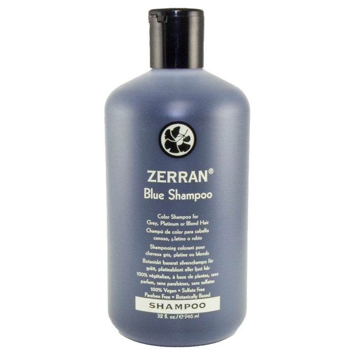 Blue shampoo is designed to take the yellow or brassy color from grey, platinum or blond hair with a unique formula of natural extracts and color from Chamomile Oil. Natural conditioners help keep the hair soft and pliable. Blue shampoo is safe for permed and colored hair.